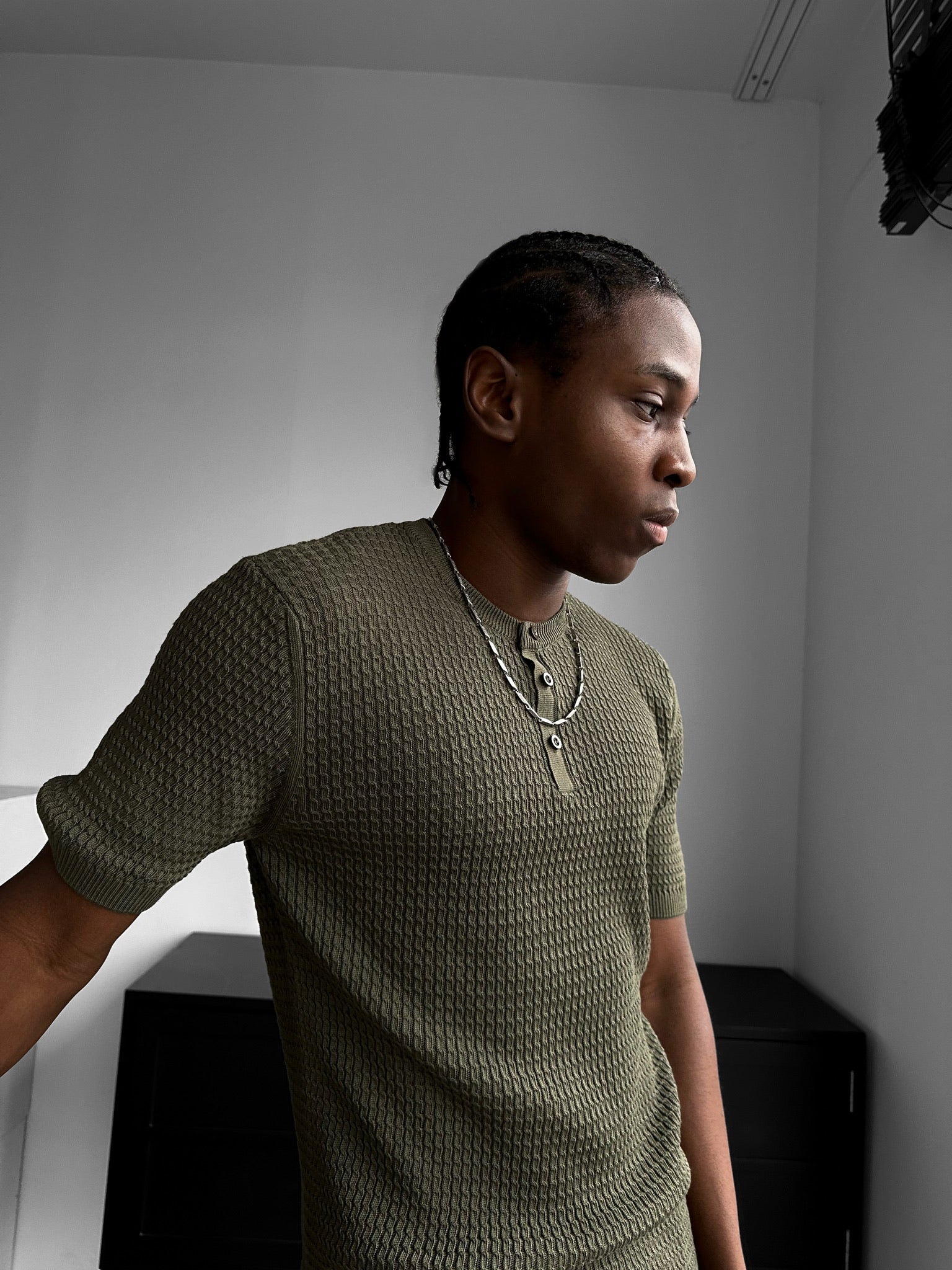 Regular Fit Waffle Button T-shirt - Khaki