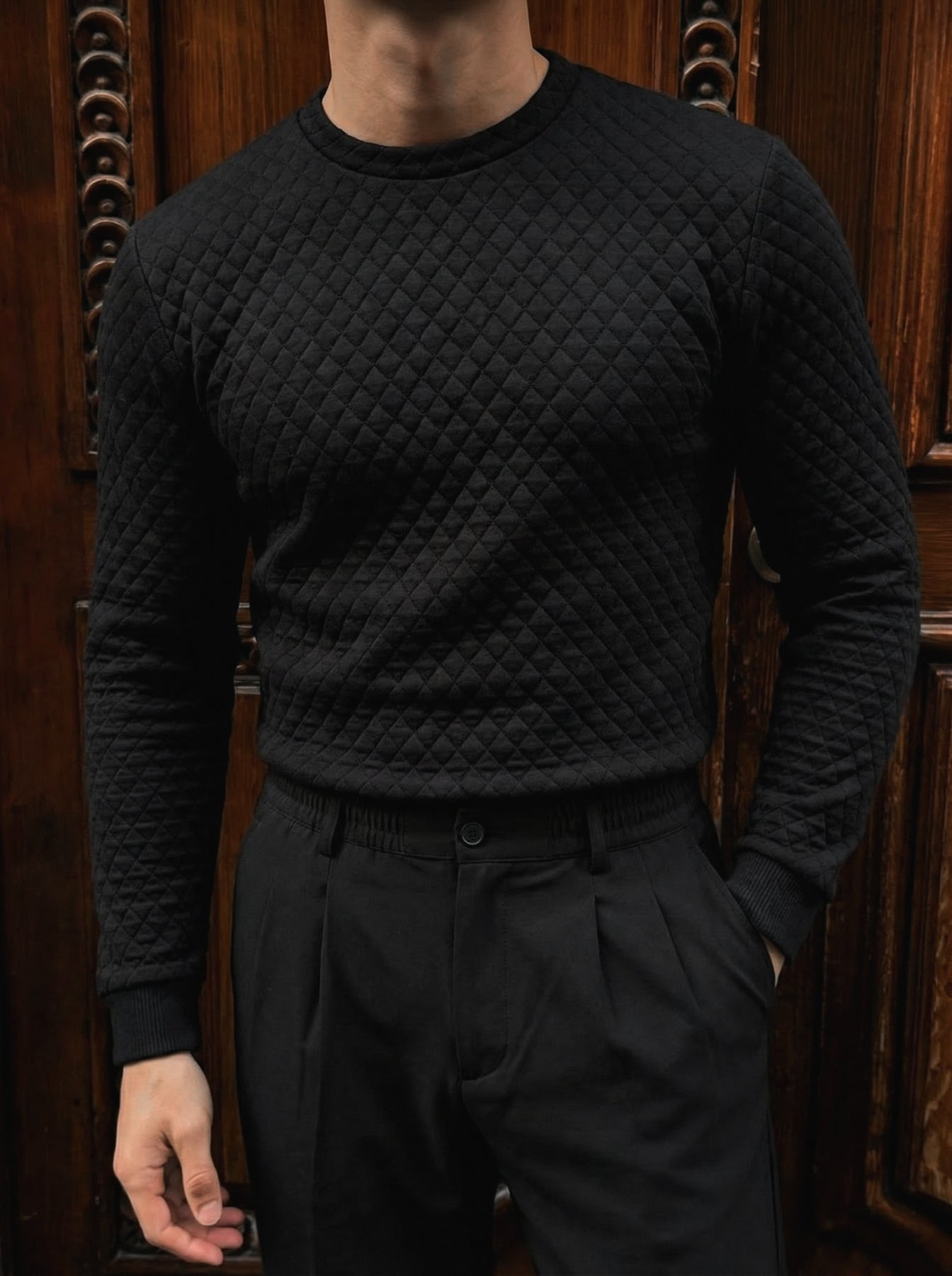 Slim Fit Textured Sweater - Black